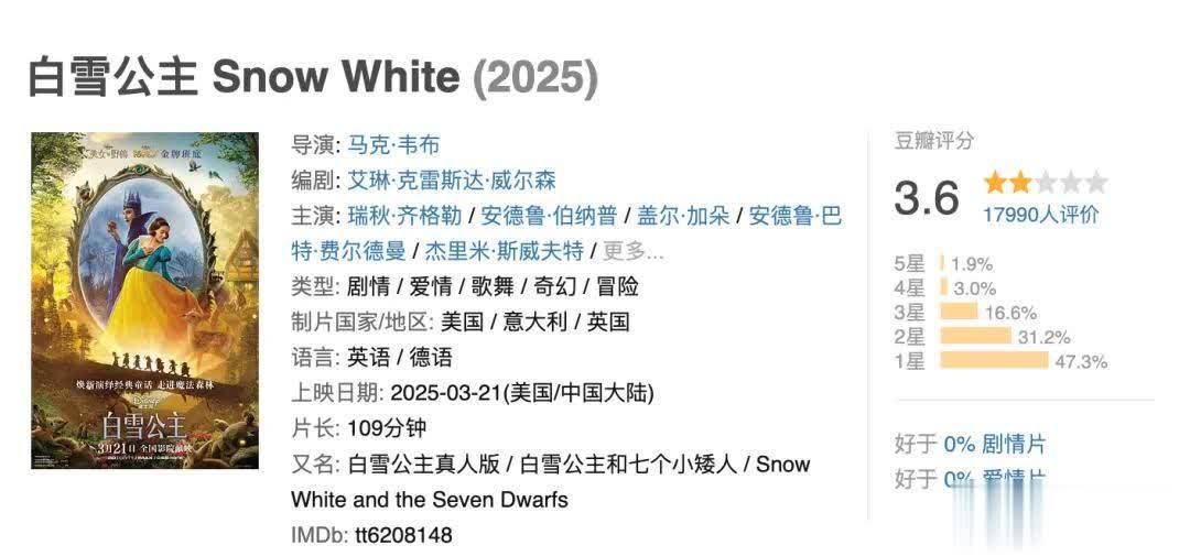 小好意思东谈主鱼也就算了,但白雪公主可所以“皮肤白”出名的啊。