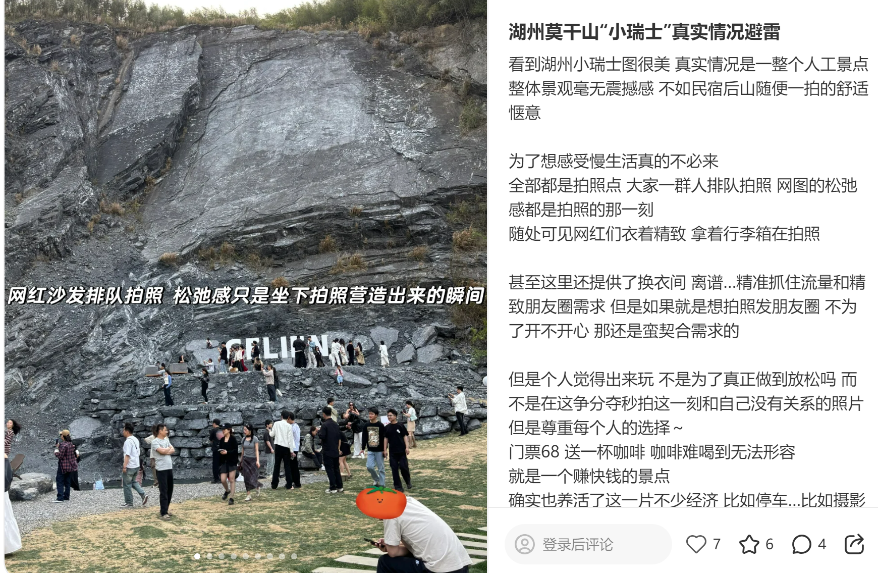 九派新闻刺眼到,在酬酢平台上,讨论声息呈南北极分化,有东说念主认为不虚此行,拍的像片很好意思,但也有东说念主发避雷帖,称“一统共东说念主工景点,人人一群东说念主列队拍照”“68元不值,咖啡很难喝”。