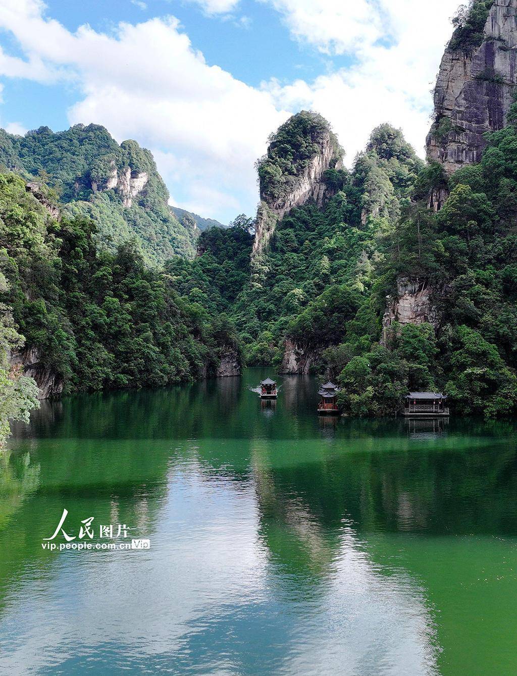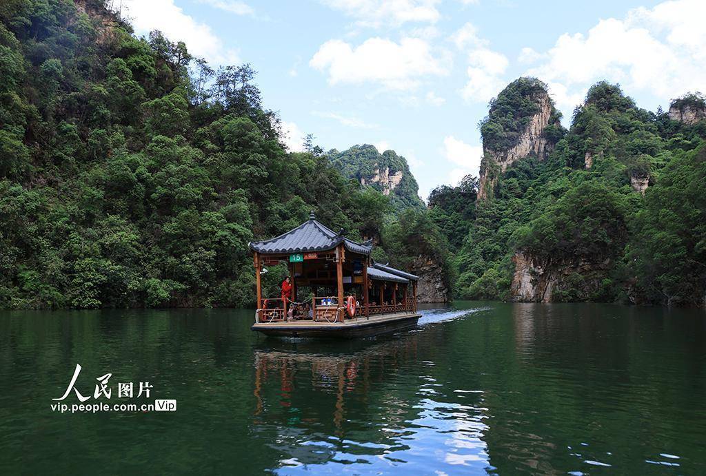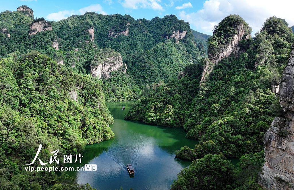 2025年5月8日,湖南张家界市武陵源区宝峰湖,青山叠翠,峰峦绿染,游东谈主乘船犹豫山水间赌钱app下载,饱览好意思景。吴勇兵摄(东谈主民图片网)