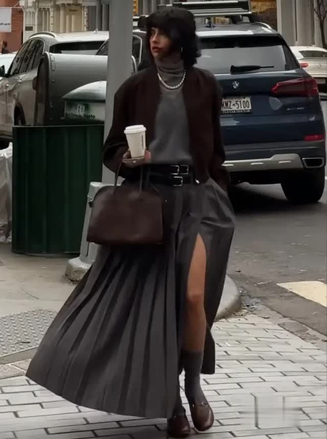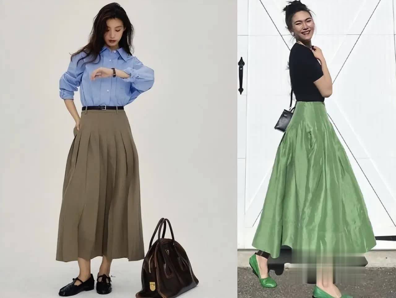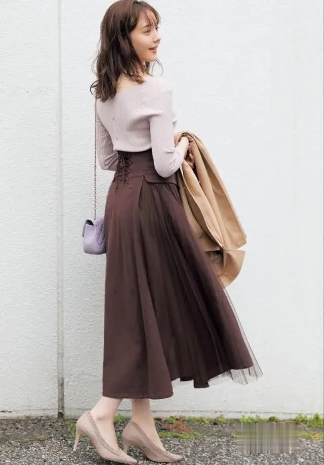 卡其色、棕色、燕麦色、橄榄绿等地面色系,与秋日氛围无缺契合。这些色调自带的千里稳与饶恕,能让“高腰压褶半裙”的优雅感更进一竿。
