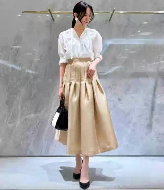 “高腰压褶半裙”的高档感穿搭一、材质的精挑细选:高档感的基石