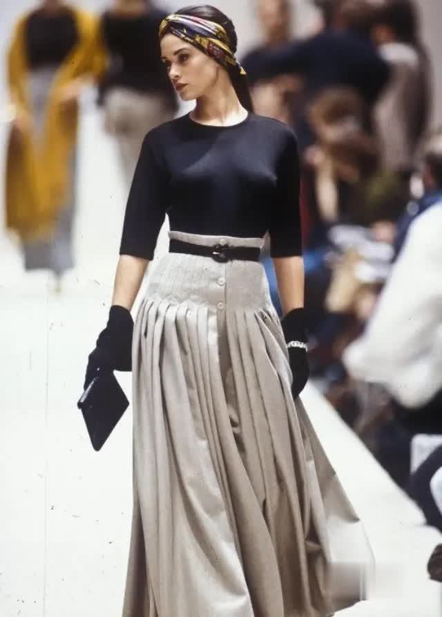 “高腰压褶半裙”是一种流行至今秋的裙装项目,它的主要特色是:上紧下宽的廓形打算,胯部或臀部以上的部分时常相比贴身或修身,褶皱部分是固定的,好像突显身材弧线。