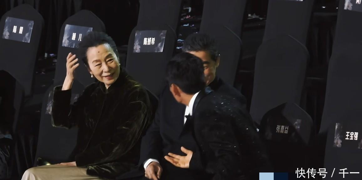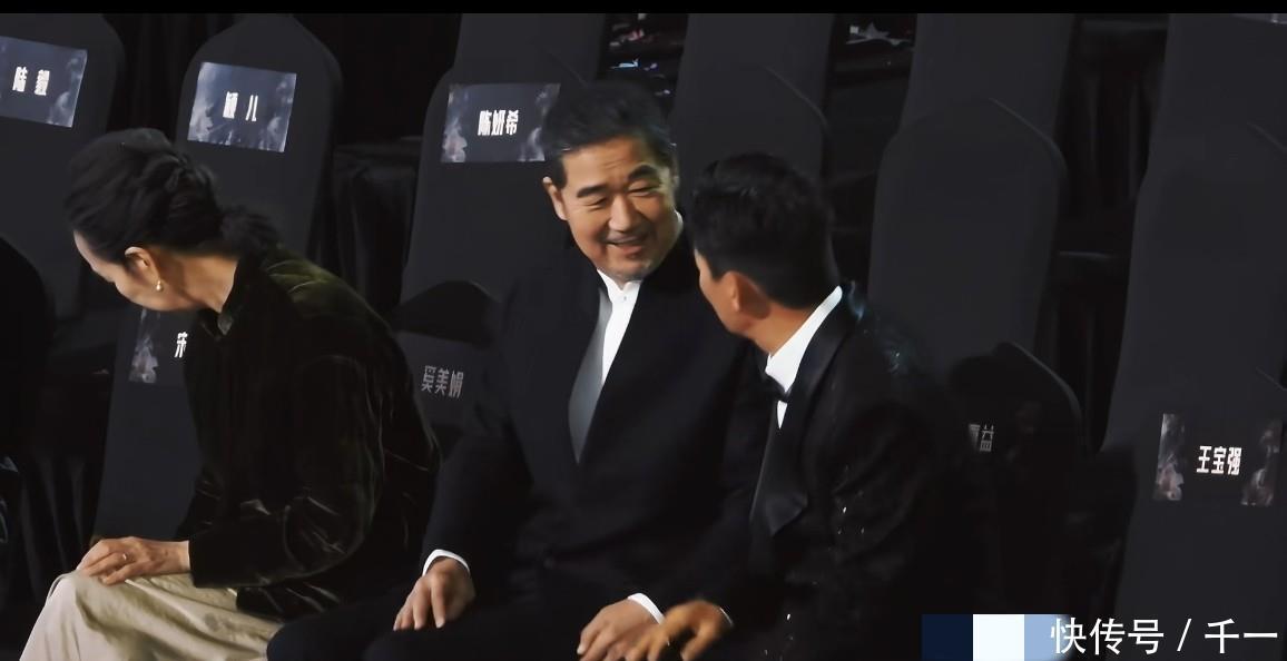 同为老戏骨还统统演过戏的张国立,坐到身旁张嘉益的座位上和傍边的王宝强相谈甚欢,全程没给奚好意思娟一个眼角风。在王宝强和奚好意思娟聊天时,张国立也不动声色的转动话题,将王宝强的视野引到旁处。