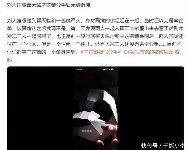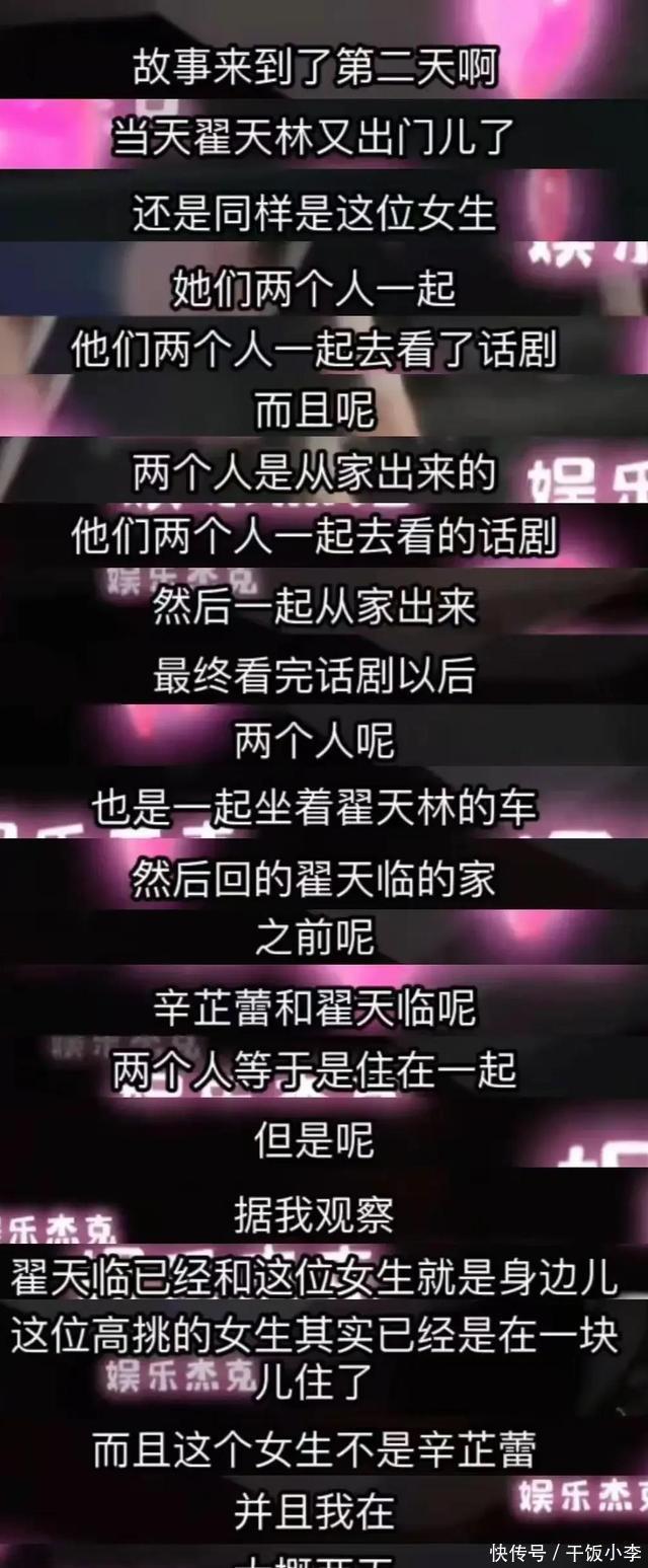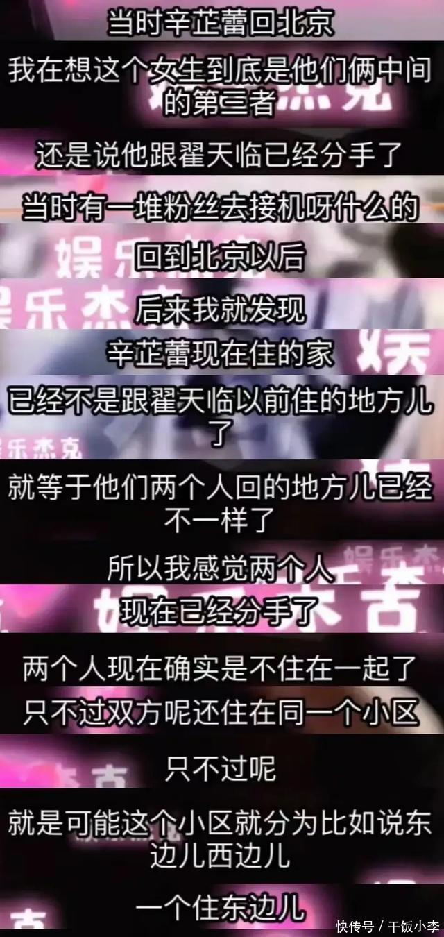 于是该文娱大号伸开了合理的预计,认为辛芷蕾和翟天临疑似签订离异。