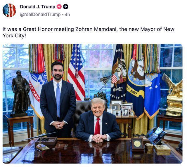特朗普还在媒体碰面会结果时称“我会为他加油”,并在外交平台上发布两东谈主合影,配文“很庆幸会见纽约新任市长”。