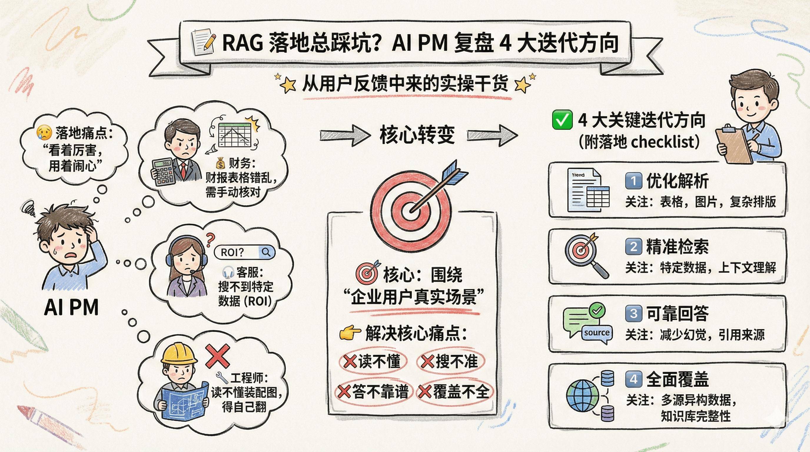 RAG 居品在落地时常被用户吐槽,其迭代并非堆技艺参数,而是围绕企业用户确实场景,惩办核肉痛点。本文共享 4 个瑕疵迭代标的,全是实操干货,助您打造好用的 RAG 居品。