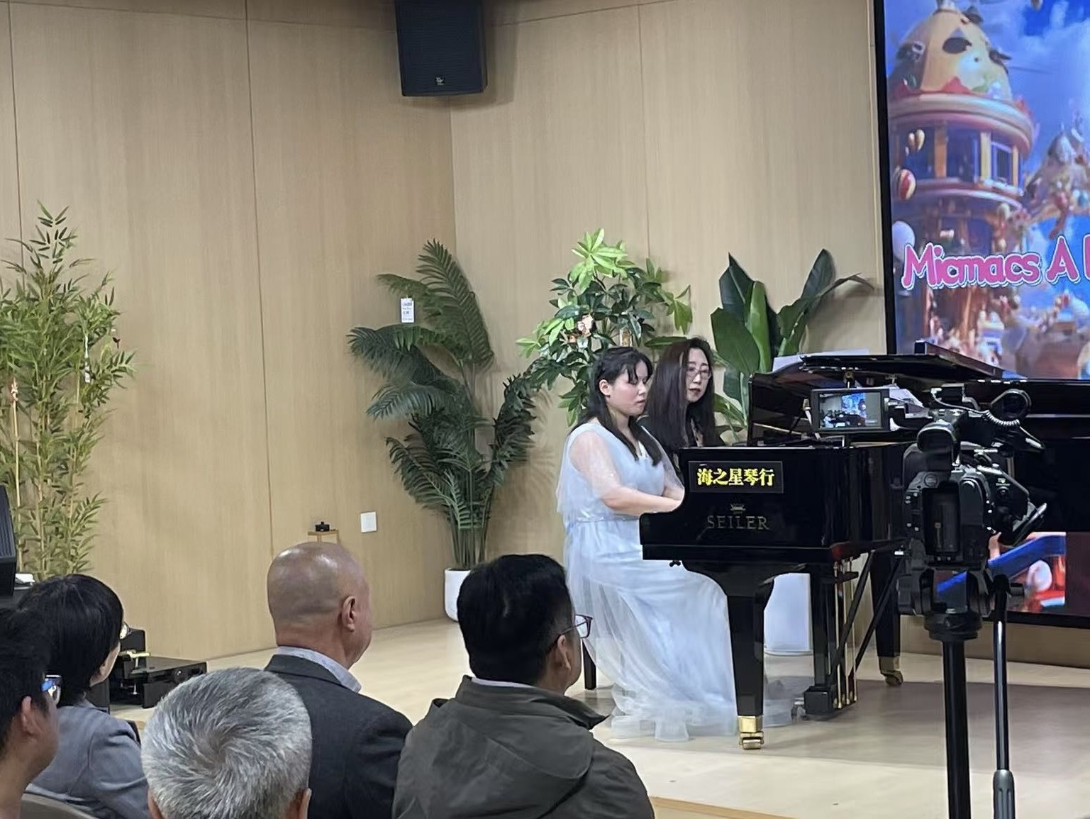 音乐会以《寰宇赠予我的》开场,党斯沫身着驯顺,指尖在琴键上精确游走,密致的热诚抒发令不雅众动容。整场上演党斯沫共弹奏九个曲目,其中三首与大连海之星琴行校长孔洁携手出场。