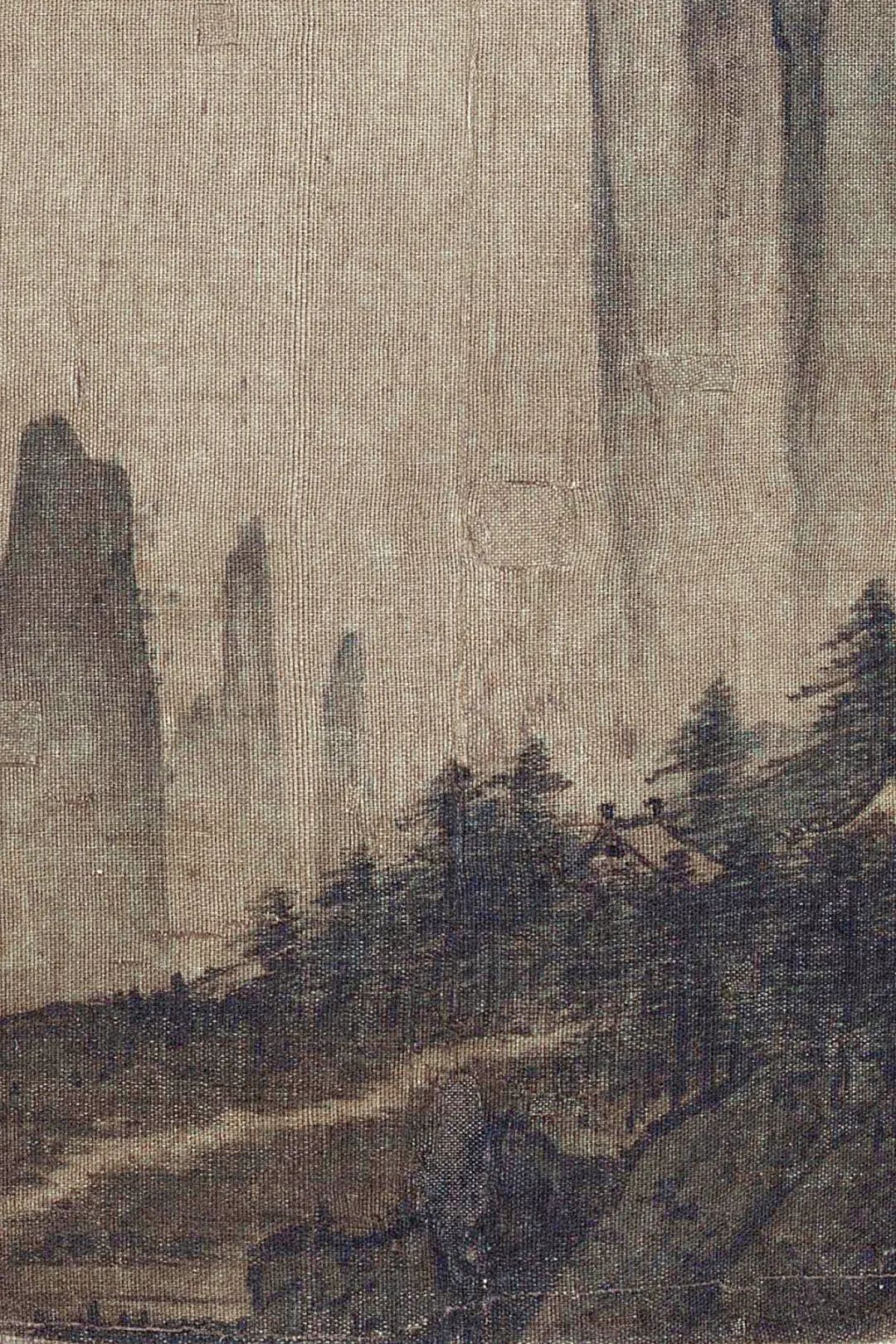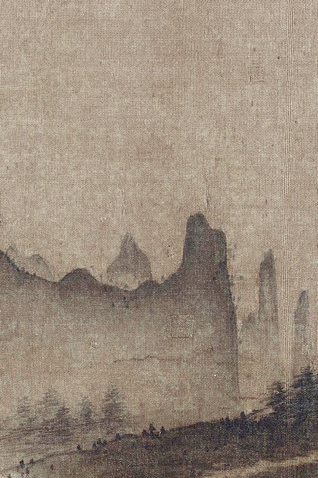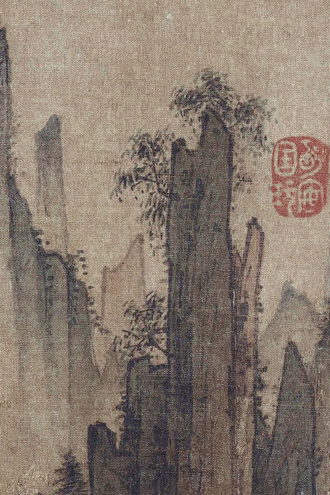 画家期骗“勾染纠合”技法,山石概述以方劲线条勾画,皴擦处却用淡墨晕染,这种技法矛盾恰似南宋文东说念主“外儒内说念”的想想结构。松针用细笔攒簇,枝干却以浓墨挥洒,这种对比暗喻士东说念主既要坚守儒家礼制,又要追求说念家目田。画中寒涛声与钟声的预见重迭,通过“通感”手法将视觉回荡为听觉,营造出“大音希声”的禅意空间,这种处分式样比同期期李唐《万壑松风图》更具玄学深度。